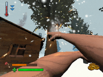 Punch trees and eat shrooms to stave off starvation mode in this juiced up survival game released exclusively on Pelit Magazine's PSX demo disc vol 01 in 1995.